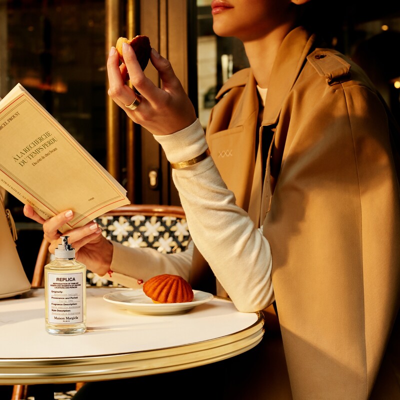 Maison Margiela复刻系列香氛,以气息重拾记忆画面。2024年秋冬推出的就将午后在巴黎咖啡馆品嚐玛德莲蛋糕的美妙瞬间凝练为一抹香气。