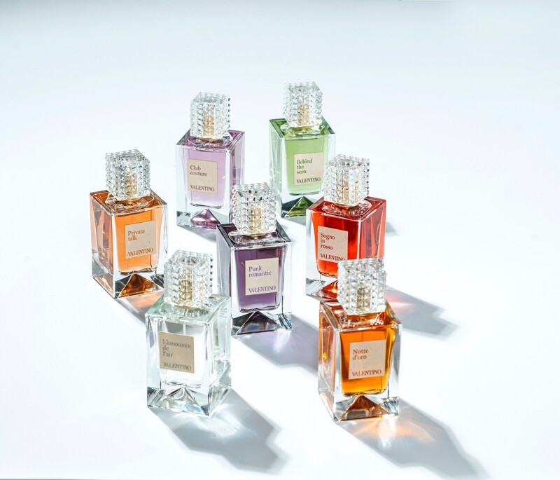 VALENTINO高级订製香水全系列。 而高级订製香水系列的瓶身採用全透明玻璃设计,完美映射每一支香水独一无二的色彩。瓶底优雅又大气的玻璃铆订,更是专属于VALENTINO的时髦签章;连香水瓶上的标籤布标都以VALENTINO高订礼盒的专用布料製作,标誌它不凡的身份象徵。