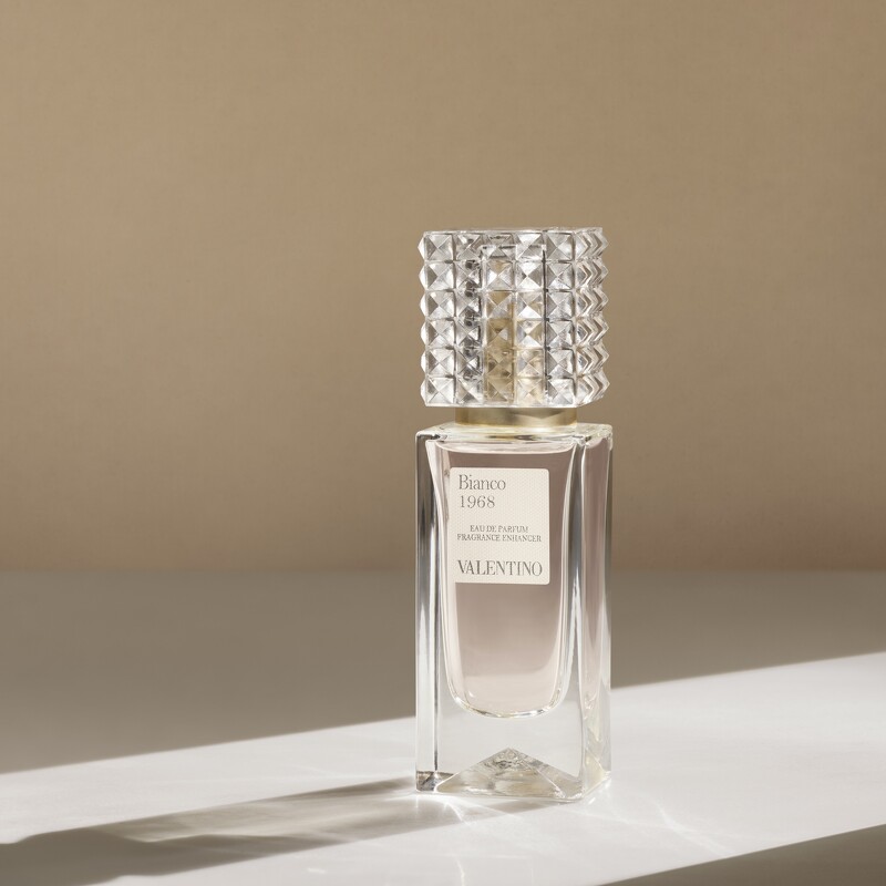 VALENTINO高级订製调香-纯白BIANCO 1968 30ml,NT5,500 的灵感来源,是VALENTINO 1968年以全白设计震惊时尚圈的SALA BIANCA大秀。以最纯粹的白色展示服装,更能呈现剪裁与布料的精湛细腻。而作为调香的功能也是如此,清淡的白麝香,更能凸显结构複杂的高订香水的华丽层次与香气。