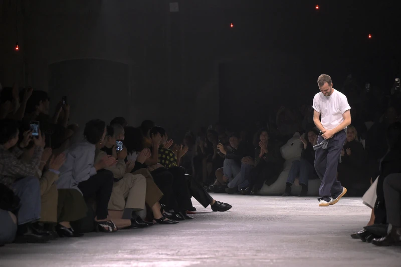 今年六月的男装週中,Jonathan Anderson带来了入主品牌后的男装首秀,铺天盖地的报导版面,火热昭告Dior全新时代的来临。这位来自爱尔兰的设计师,自2013到2025年为Loewe开创出黄金时代,使其从皮革起家的西班牙老牌,勾勒出一拥有工艺历史、设计哲学、品牌特色的清晰品牌轮廓;在位期间不仅让Loewe财收大涨五倍,自己也成为最受欢迎明星设计师之一。Dior男装秀场中,他将经典的Bar Jacket改写为现代丹迪气息毛呢外套、1948年Delft礼服转生成潮流感的百褶工装宽裤,把Dior的经典女装设计与轮廓,流畅转译成充满当代氛围的男装造型。相较于Maria Grazia Chiuri大张旗鼓、掷地有声的女性主义设计,同样善于在设计中引经据典的Jonathan Anderson,手法显然更活泼新鲜,从18世纪音乐家到现代艺术家,他总能举重若轻地藉由精美服装呈现论述,也总能端出新颖的轮廓、天外一笔的面料实验,以及令人称奇的工艺手法,给出充满当代观点的新鲜设计。值得一提的是,LVMH集团将Dior男女装、高订等一年10个系列全数交给Jonathan Anderson,成为迪奥先生本人之后首位完全主导品牌的设计师,可见集团对他的巨大信任。为了接手Dior,他也将自己的个人品牌J. W. Anderson转型成聚焦多元选品的生活品牌,过去他同时负责个人品牌、Loewe、Uniqlo联名甚至电影服装设计,堪称时尚圈最强打工人,如今势必为Dior的时装能量带来新活水。